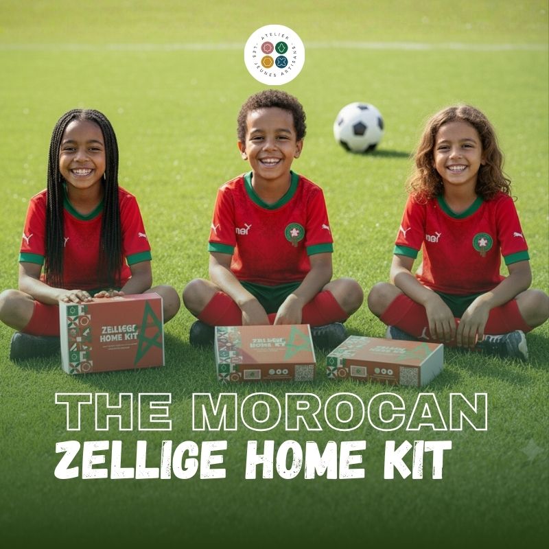 Ne manquez pas l’occasion de vivre une expérience artisanale unique et pleine de sens ! Notre Kit du drapeau marocain en Zellige vous permet de créer vous-même une pièce traditionnelle et colorée, symbole de fierté nationale. Conçu spécialement pour les amateurs d’art, les familles et les supporters, ce kit vous offre une activité ludique et créative, parfaite pour partager un moment convivial tout en célébrant le Maroc lors de la CAN 2025. Chaque kit contient tout le nécessaire pour assembler votre drapeau en Zellige, étape par étape, même si vous êtes débutant. Repartez avec votre création unique, un souvenir artisanal et patriotique qui reflète votre passion pour le football et pour l’art marocain.